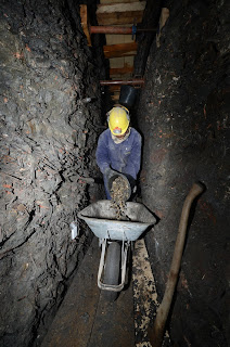 Ausgrabungsstätten der Archäologen unter Tage.